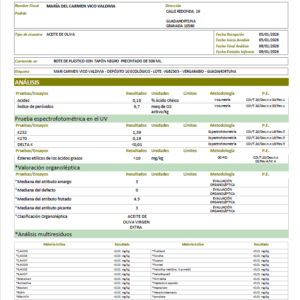 Oliivid pressitakse õliks umbes 2 tunni jooksul pärast korjamist, mis säilitadab oliivide maksimaalse värskuse ja kvaliteedi. Õli on läbinud laboratoorsed analüüsid, mille tulemused on ülihead. Tutvu laborianalüüsidega meie kodulehel. Õli laboratoorselt mõõdetud happesus on vaid 0,18%, mis on erakordselt madal näitaja ja viitab väga kõrgele kvaliteedile.